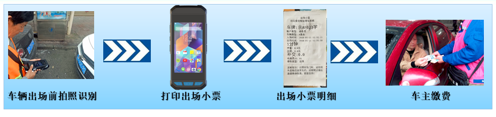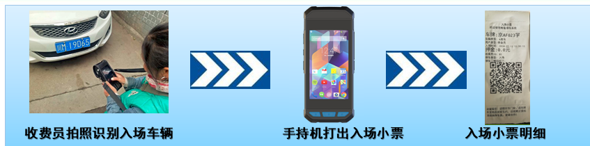 車輛入場——地磁檢測啟動——提交數據至后臺——手持端車位報警——手持機掃描車牌(錄入)——打印小票
